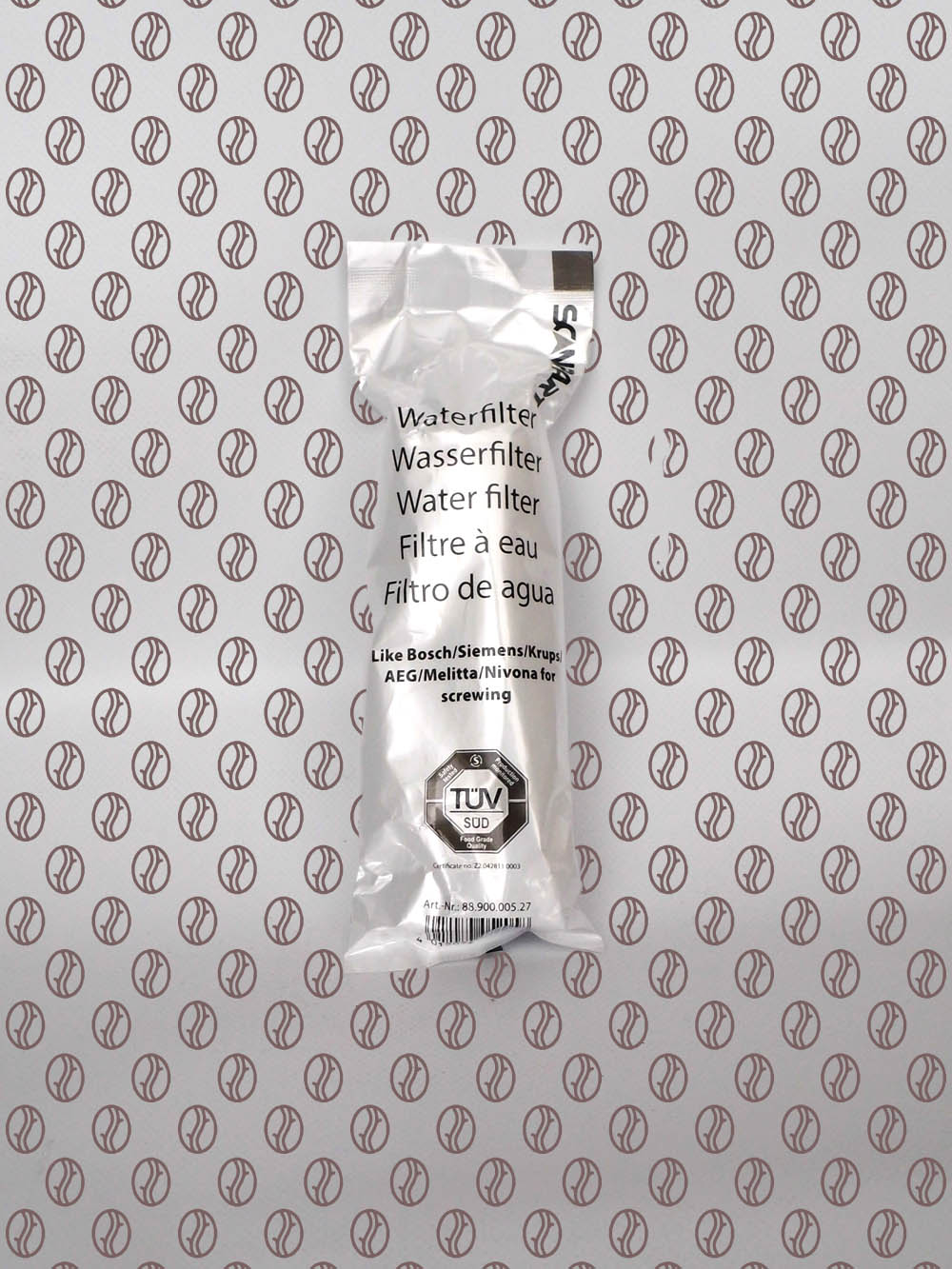 Vízszűrők általános leírása: Körülbelül 50 liter víz megszűrésére alkalmasak. Ez 400 csésze hosszú kávénak vagy 1000 csésze eszpresszónak felel meg. A szűrőket ajánlott legalább kéthavonta cserélni és a kávégép típusának megfelelően választani. AEG CaFamosa CF 120, CF 300, CF 400, CF 500. Bosch Benvenuto Classic – TCA 5201, 5202, TCA 529 NL, 5309, 5401, 5802, 5809 B20 – TCA 6001 B25 – TCA 60 F 9 B30 – TCA 6301 B40 – TCA 6401 B60 – TCA 6701 B65 – TCA 6709 B70 – TCA 6801 B75 – TCA 6809 TKN 68 E 750, TKN 68 E 751 Gaggenau 200 serie CM 200110 CM 200130 CM 200610 CM 200630 CM 210110 CM 210130 CM 210710 Krups Artese 01 920 – F 92041 01 920 – F 92042 02 921 – F 92142 03 922 – F 92241 03 922 – F 92242 04 927 – F 92741 04 927 – F 92742 Cocoon 921 – F 92141 Espressia XP 7200 series Melitta All models Neff C 7660, Nivona All models Siemens Surpresso Compact – TK 529 NL, TK 54001, TK 58001, TK 589 NL S 20 – TK 60001 S 40 – TK 64001 S 45 – TK 64 F 09 S 60 – TK 68001 S 65 – TK 68009 S 75 – TK 68009 GB TK 68 E 570, TK 68 E 570 B Kompatibilis az AEG 9000849514, Bosch TCZ6003, Krups F088, Siemens TZ60003. 2790000861 Scanpart
